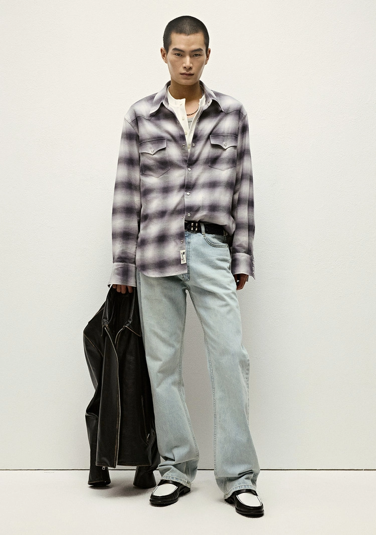 (세비지) Tartan Check Western Shirts - Purple
