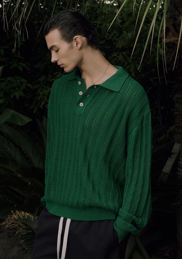 Crochet Knit Pullover - Green
