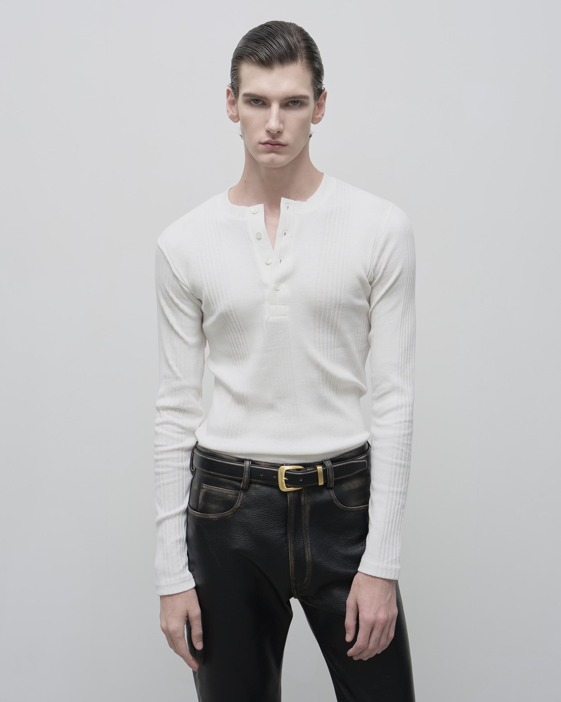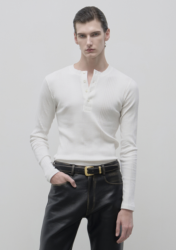 (SAVAGE) Henley Neck Jersey Long Sleeve - Ivory