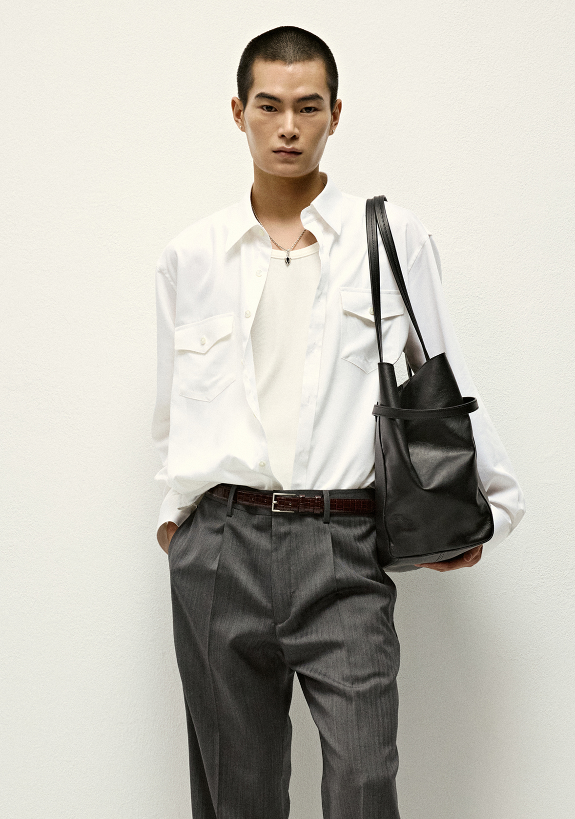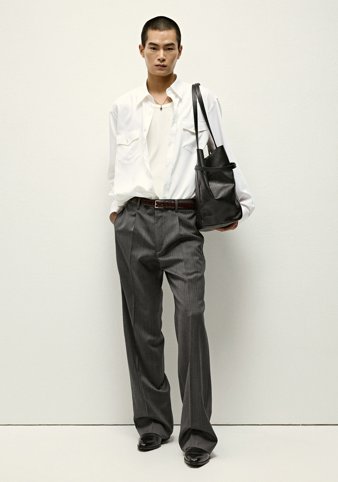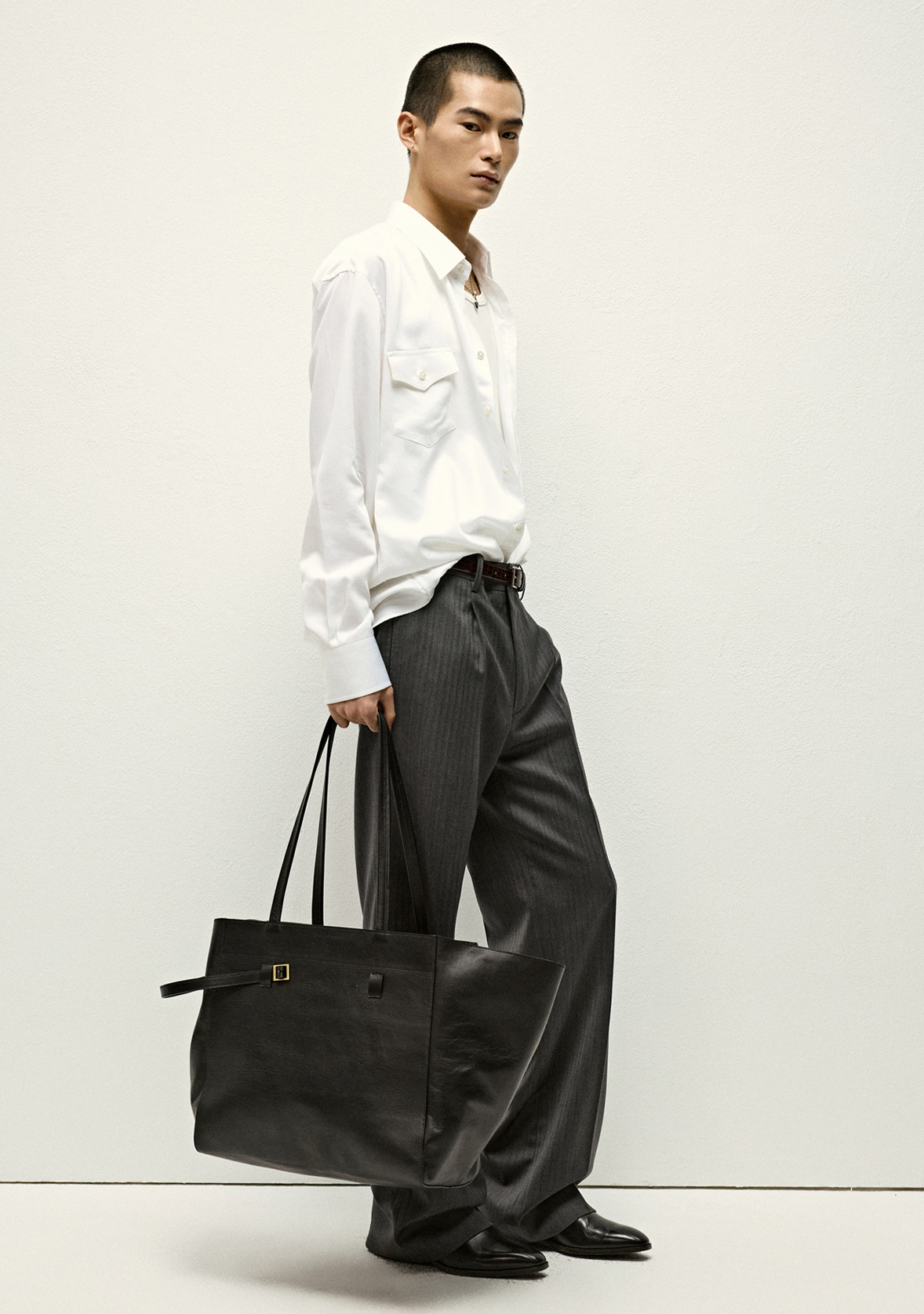 - Point collar, yoke detail, Western flap pocket