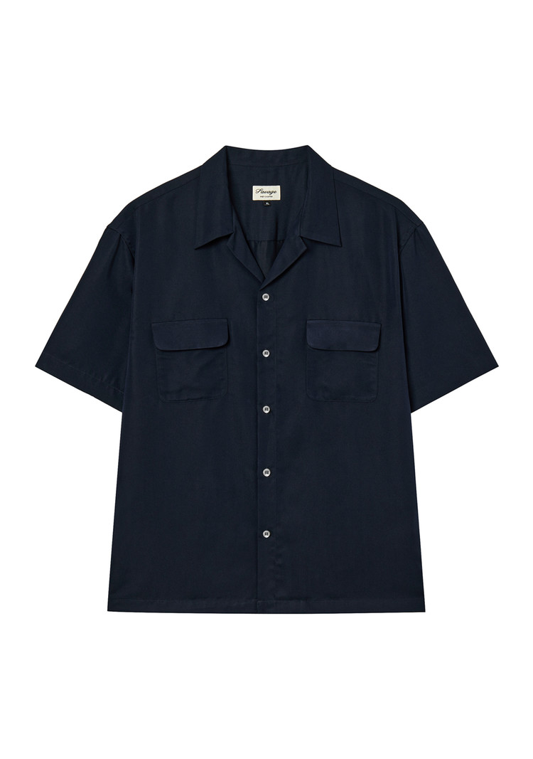 (SAVAGE) Open Collar Half Shirts - Navy