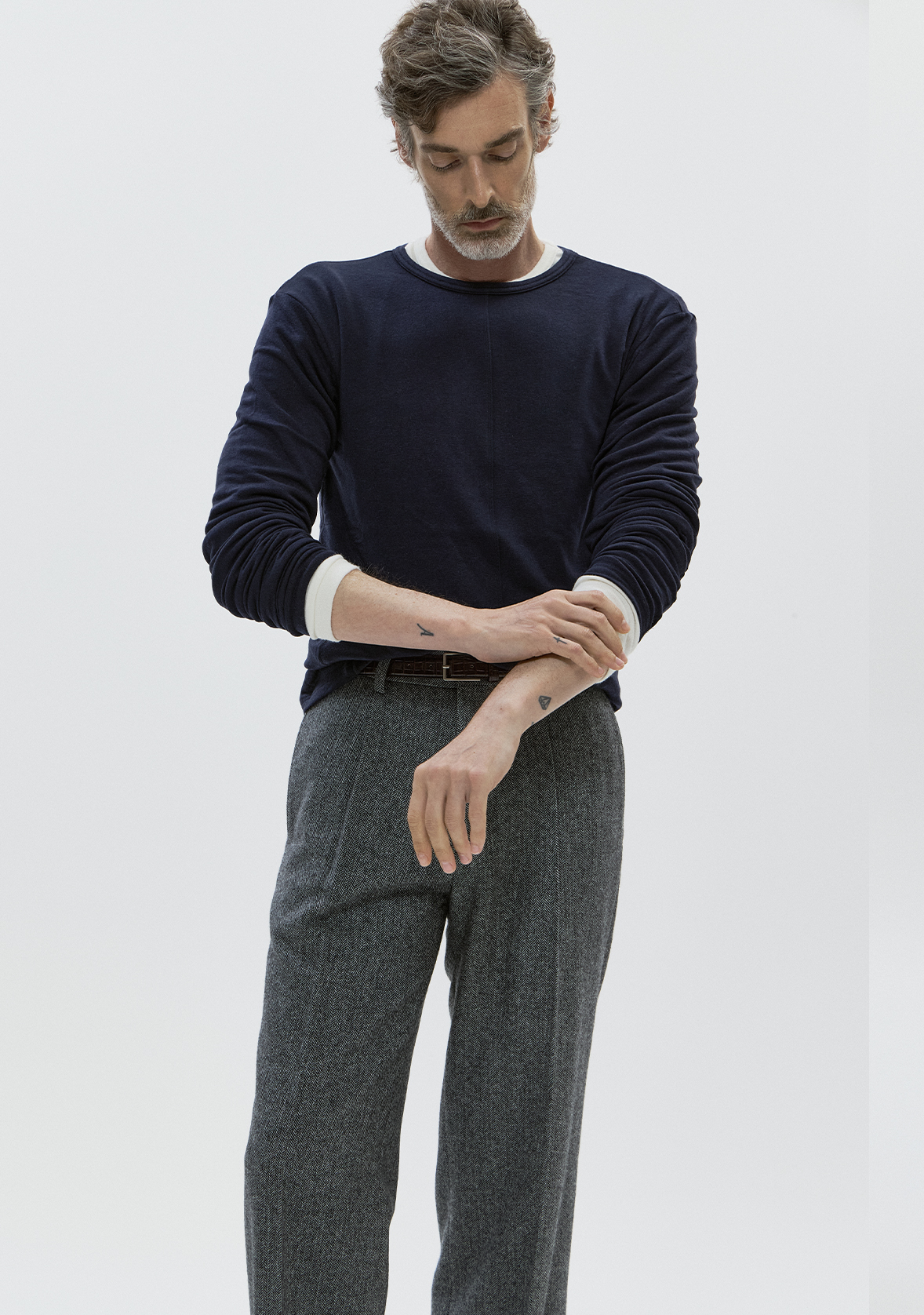 - Round neck and long sleeves