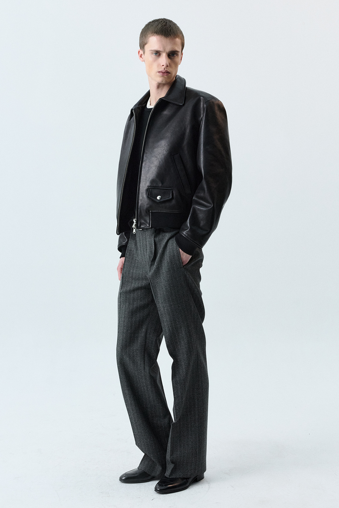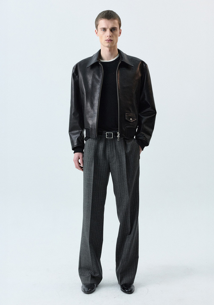 (SAVAGE) Single Leather Bomber Jacket - Black