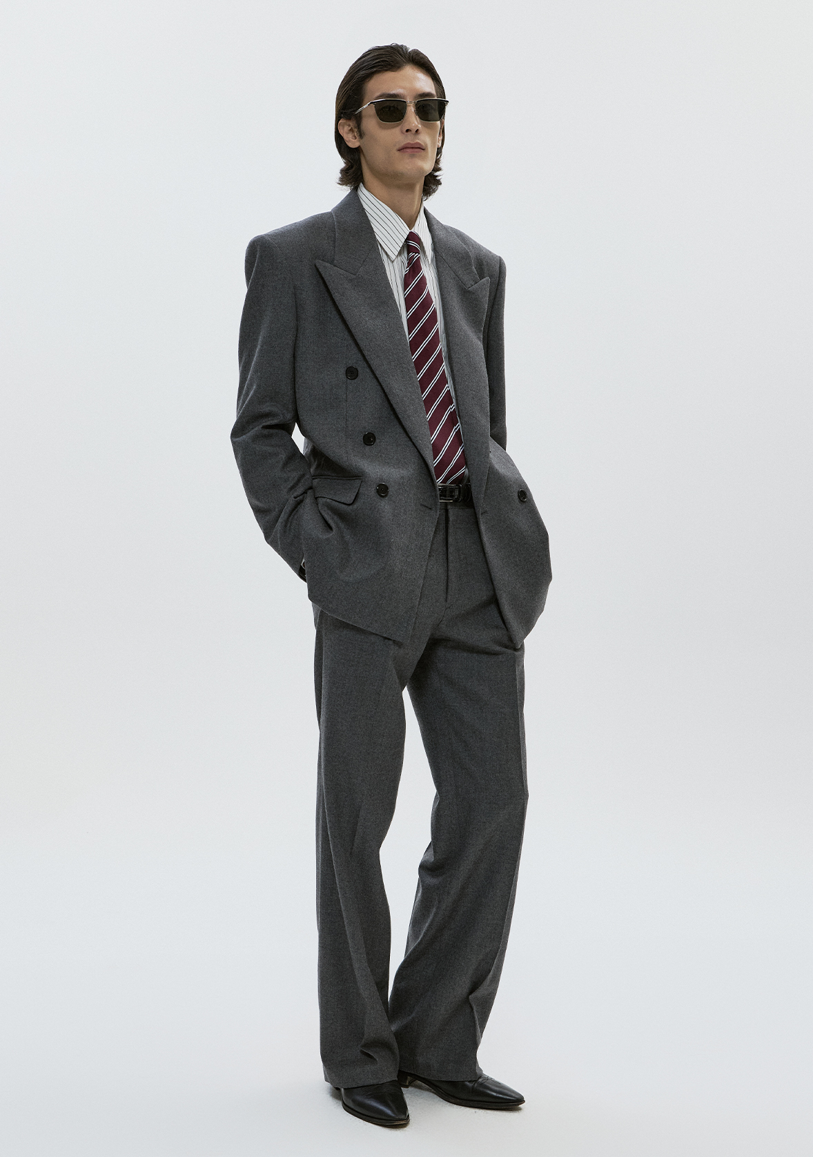 - 6x1 double-breasted with peaked lapels