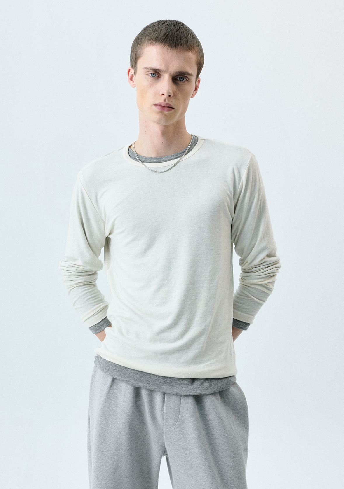 (SAVAGE) Flatlock Crewneck Long Sleeve - Beige