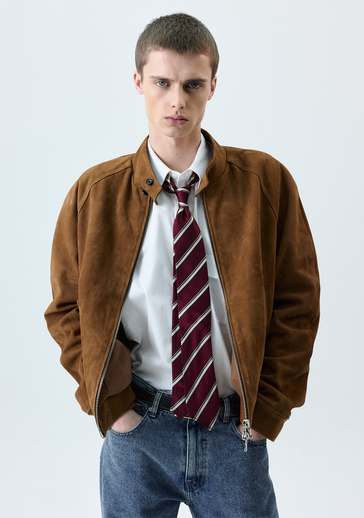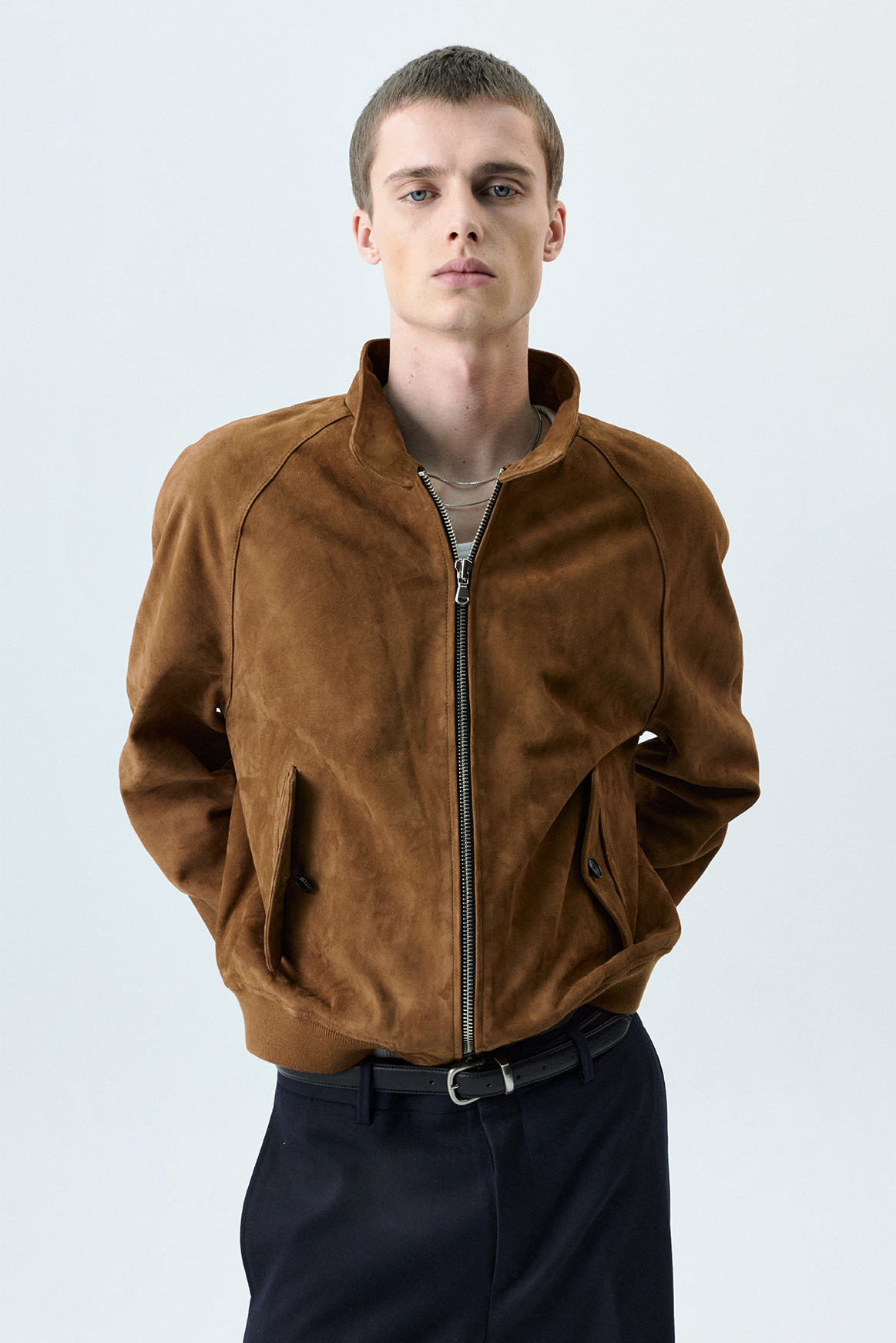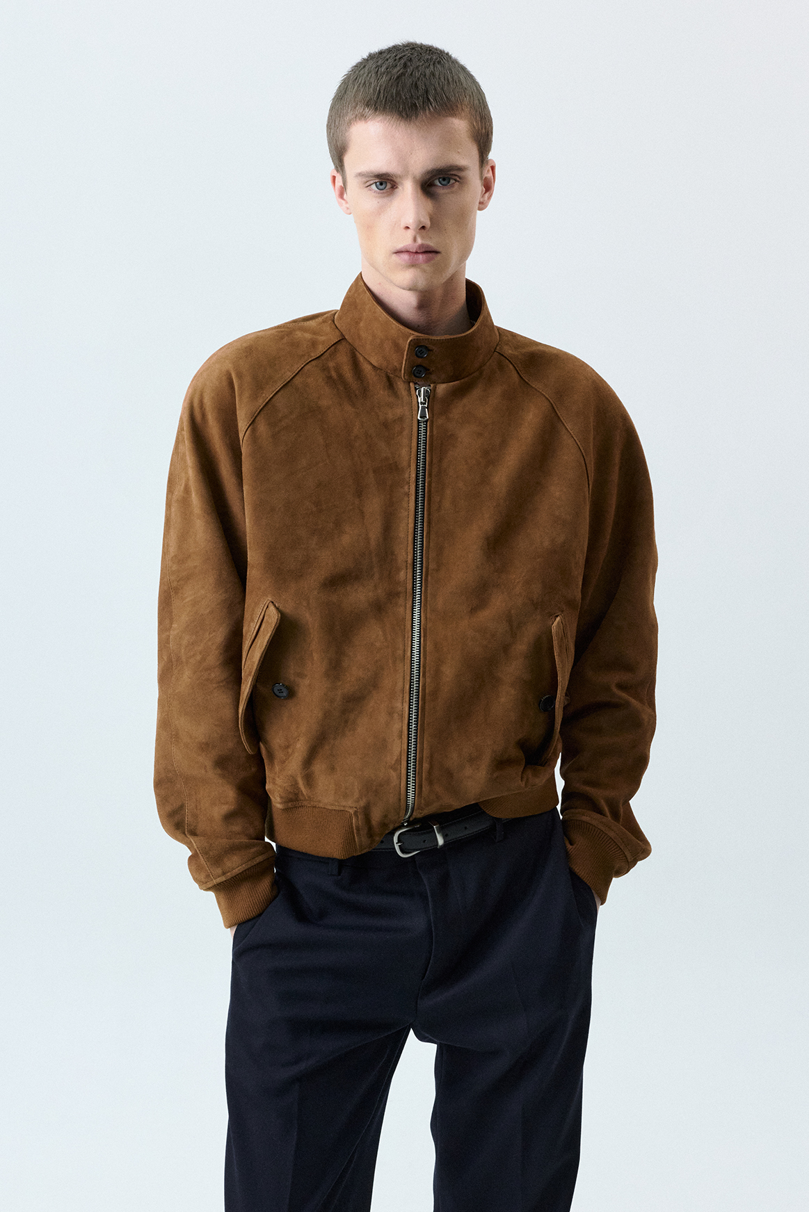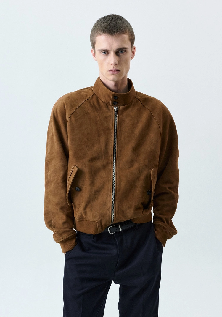 (SAVAGE) Suede Harrington Jacket - Brown
