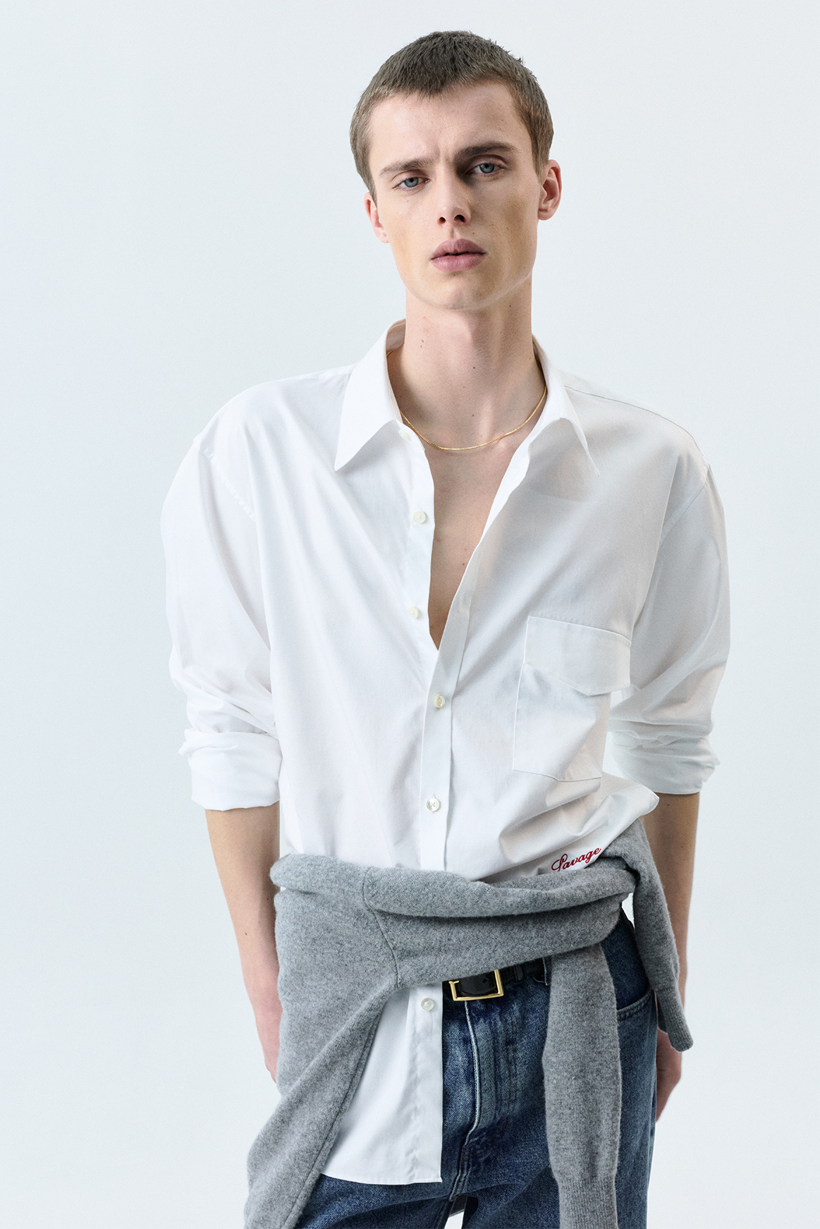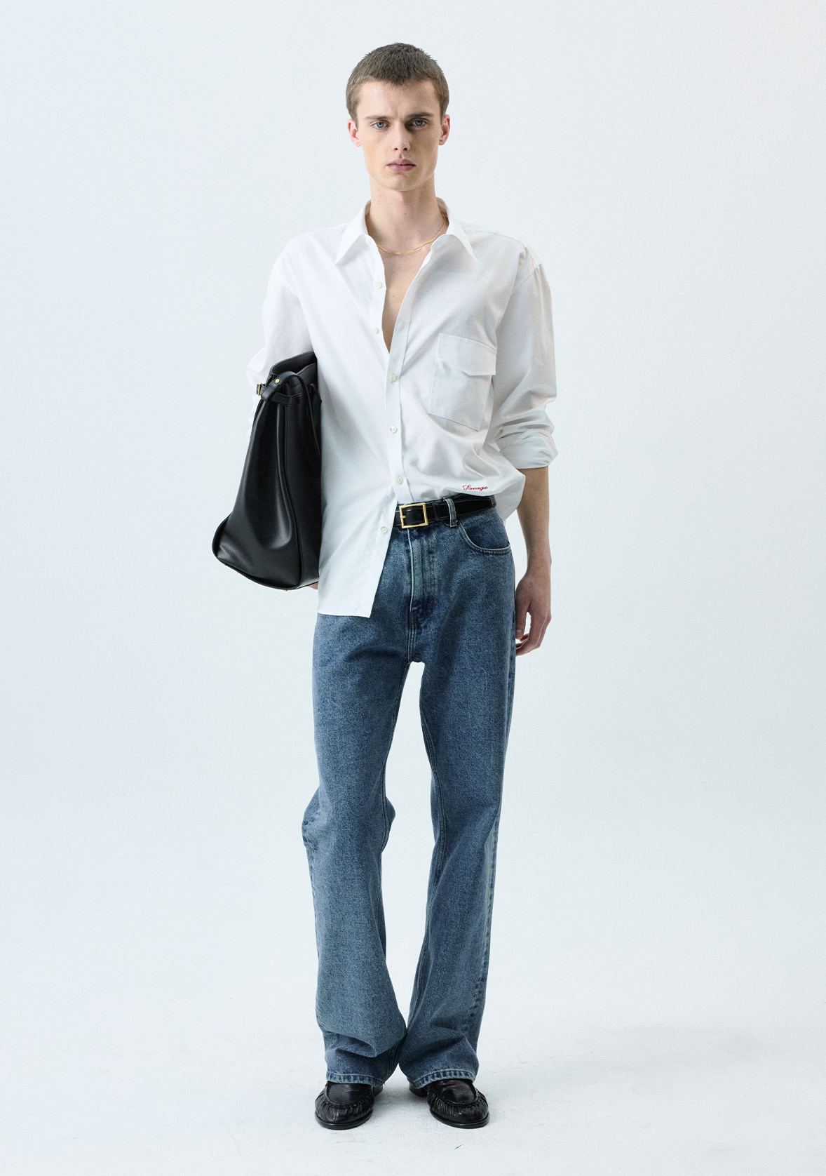 (SAVAGE) Single Pocket Cotton Shirts - White