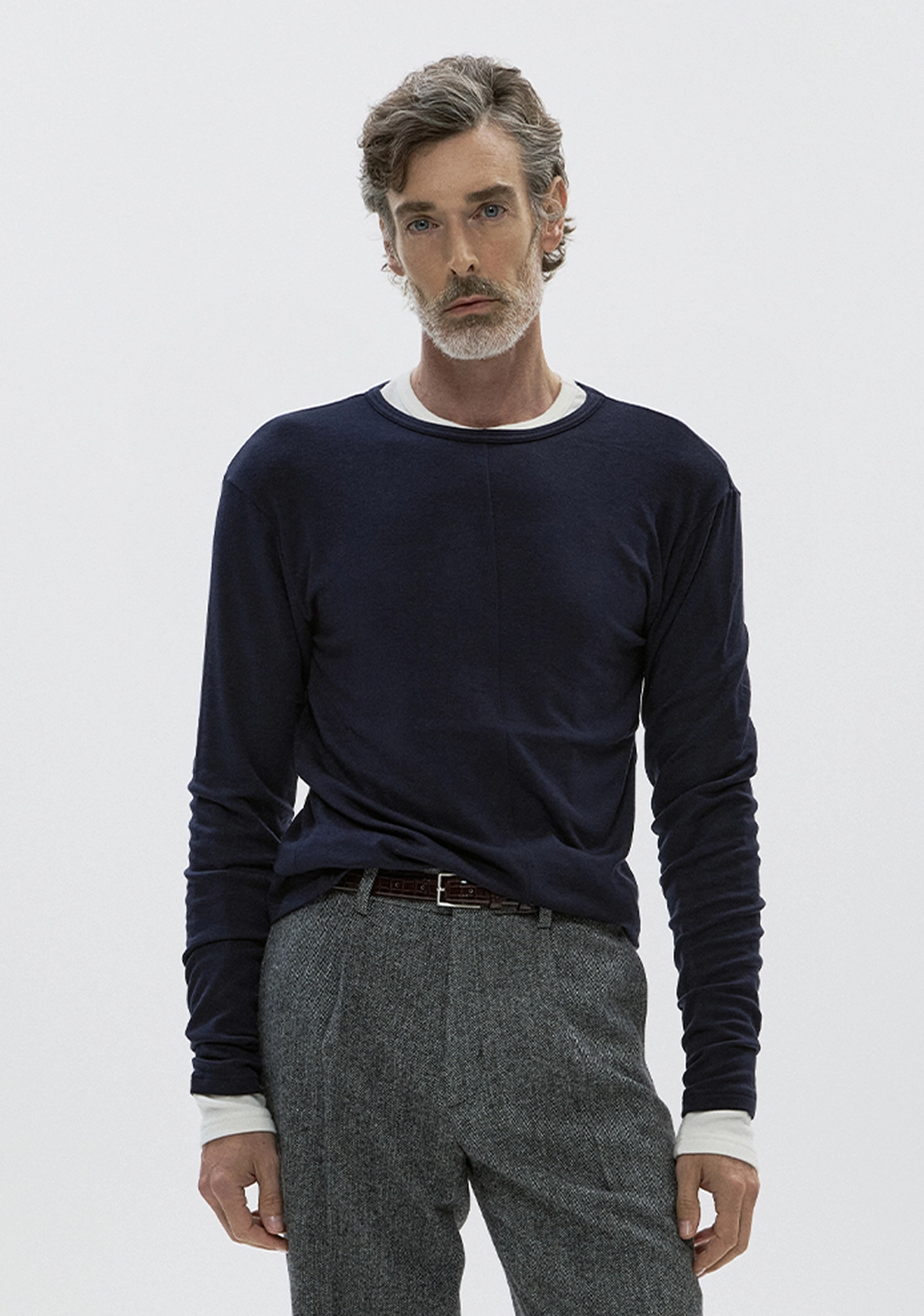 (세비지) Wool Crewneck Jersey Long Sleeve - Navy